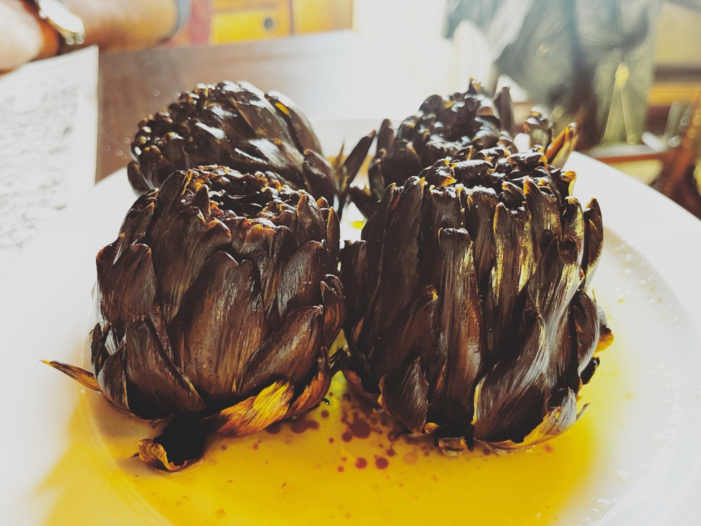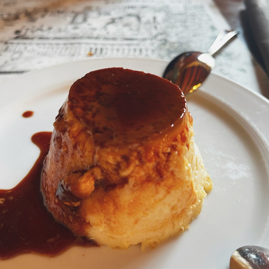 The photos above show some of the delicious dishes we tried: fried artichokes, a romesco sauce (one of the tastiest I’ve ever tried!), entrecôte with a delicious Roquefort sauce, and to finish, a flan.
