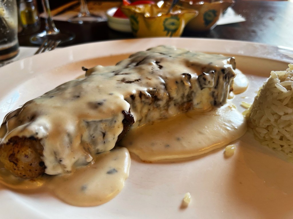 Las fotos abajo muestran unos de los platos deliciosos que probamos: alcachofas fritas, una salsa romesco más rica que he probado en mi vida, entrecôte con una salsa Roquefort exquisita, y para terminar, un flancito.