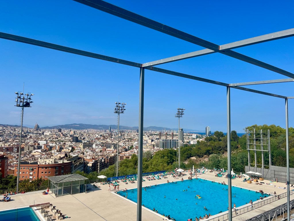 La piscina está abierta al público durante el verano, con una entrada de unos €8 para adultos, lo que me pareció una excelente relación calidad-precio. Llega temprano para conseguir una de las tumbonas y acomodarte para pasar el día. Para rematar, disfruta de un vermut y unas bravas en el bar Salts Terraza de arriba, y para mí, eso es el día de verano perfecto 🫶